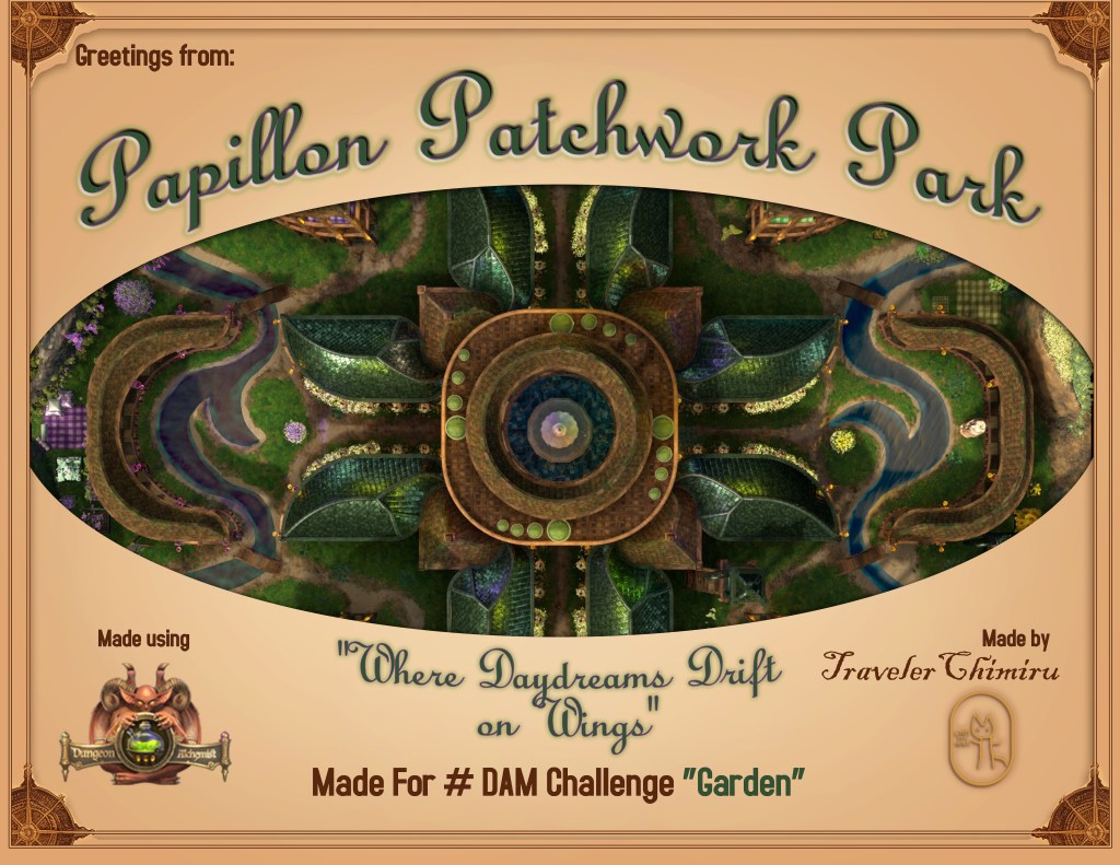 Please enjoy your visit to Papillon Patchwork Park “Where Daydreams Drift on Wings” Made for #dam-challenge “Garden” Special thanks for the assets by: Centimar DeVarion, Random Ladybird, Ice_xox, Arcadia, DallasRT, dallasrt, The TTRPGBrewster, Bearsoft, CLETECK, BlueMayje, Metaphor, Yomgeon, DangerWeasel, SAC, [DE} SunWatcher, Colt Seavers, Normandial, Sesu, Vaako, EvilDeer, milfrice, Gently Applied Heat, greywind12,ab, MrGhostDiogo,…