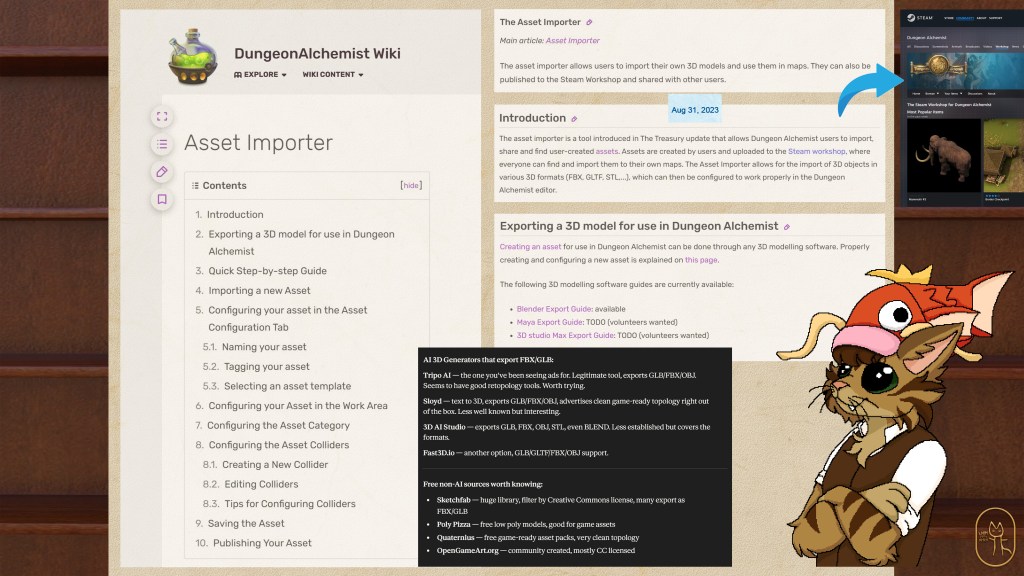 You’re actually working at a really interesting moment. The tools matured fast — 2024 into 2025 is when this became genuinely usable for someone doing exactly what you’re doing with Dungeon Alchemist assets.
