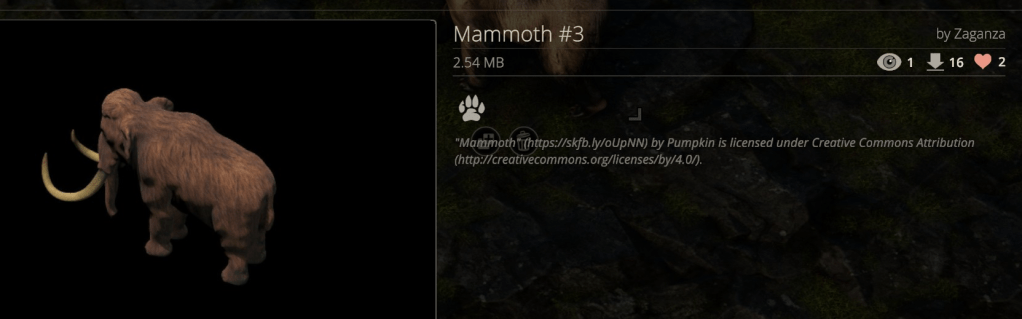 The current page has a Mammoth. Yep, I was chatting about it in Mac’s stream… getting some strange hair result trying to repaint my tropical Mammoths.
